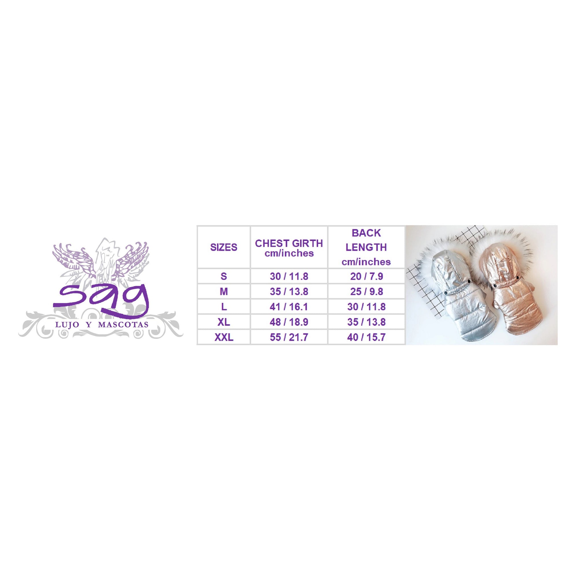 The size chart in the 3rd photo includes measurements in cm for better accuracy.